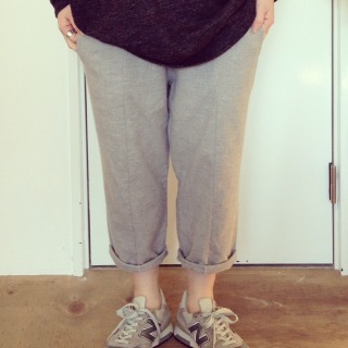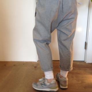 以前、リネンのグレーでも作ったことがありますが、生地が違うので、穿くと