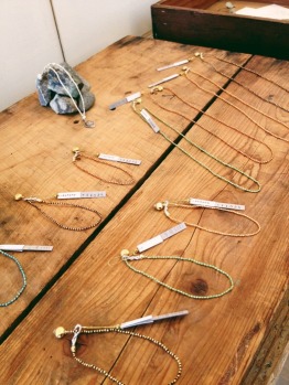 シルク紐に30刻印の真鍮チャーム+シルバービーズがポイントで