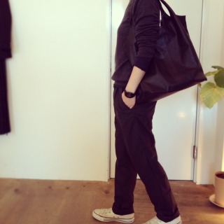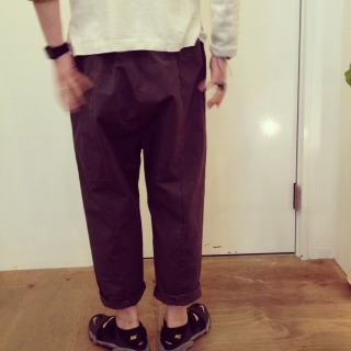ような表情にも見えますし、ウエストできっちり穿いて頂くと、キレイなパンツにも☆