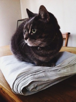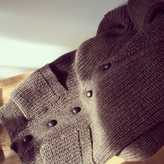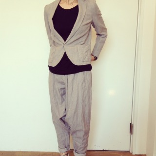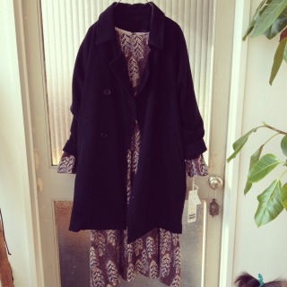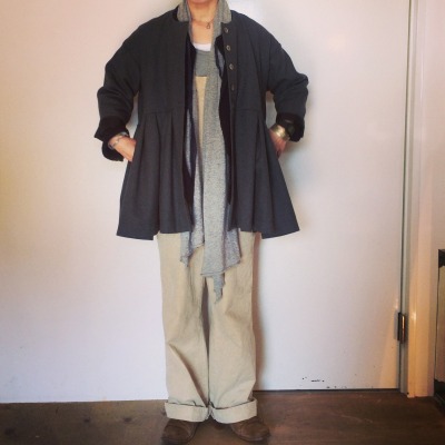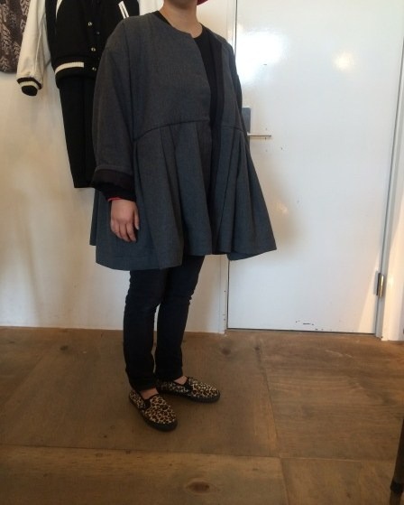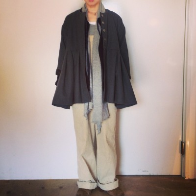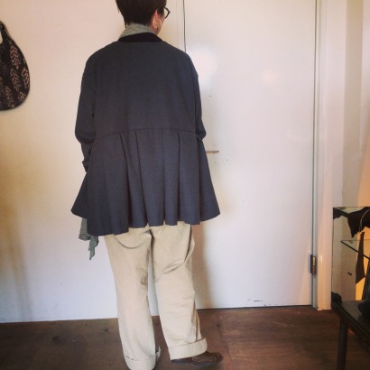ウール生地で裏地もはってあり、お色はチャコールグレーですぅ☆