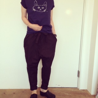 いつもの定番パンツ同様、ウエストは紐で お好きな位置で