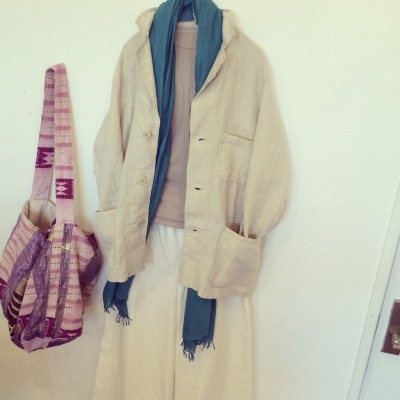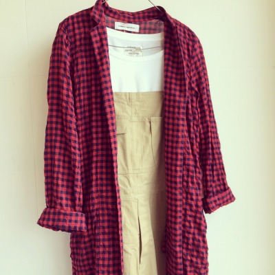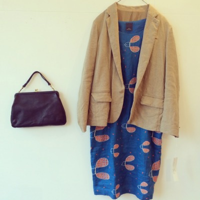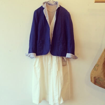 本日はオリジナルワンピース+神保さんの「白い台形スカート」「アンティークビーズネックレス」