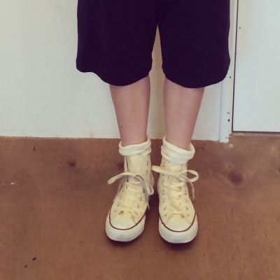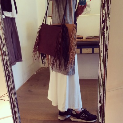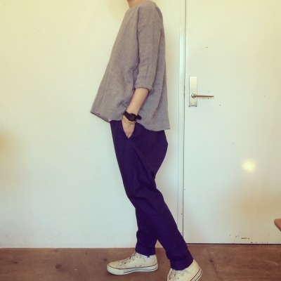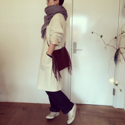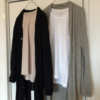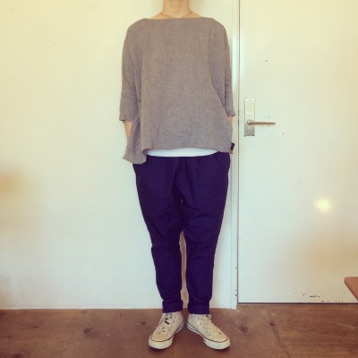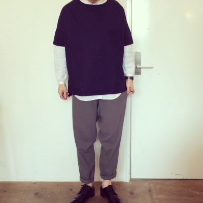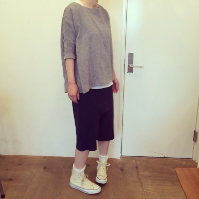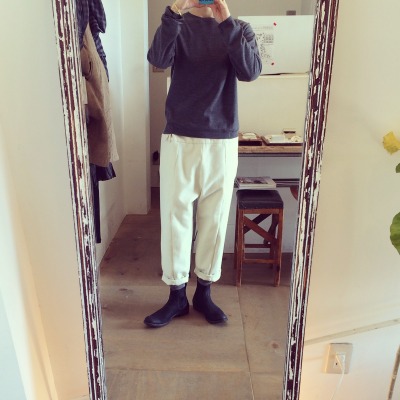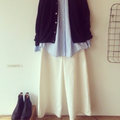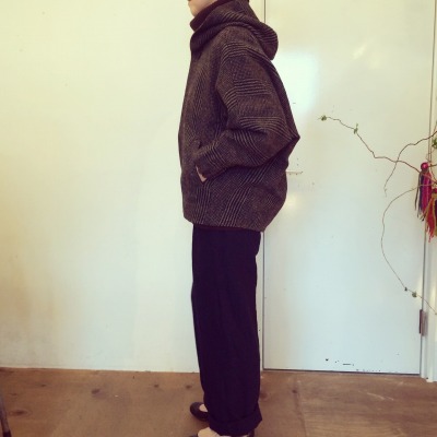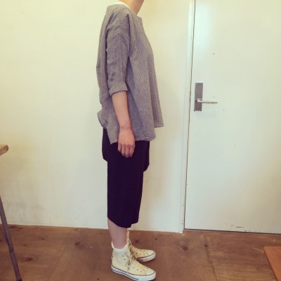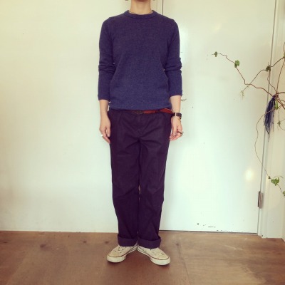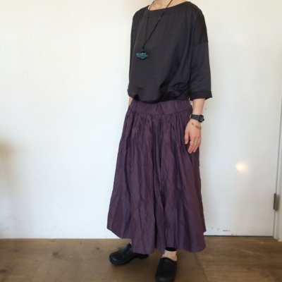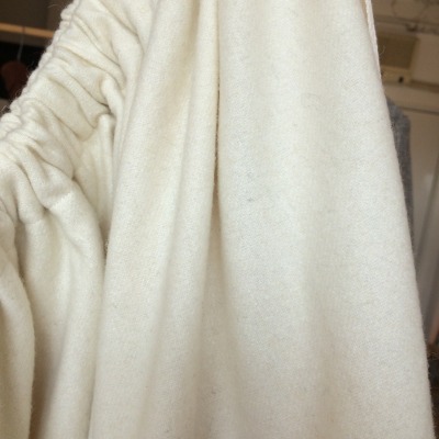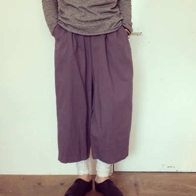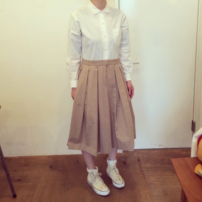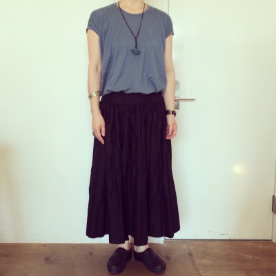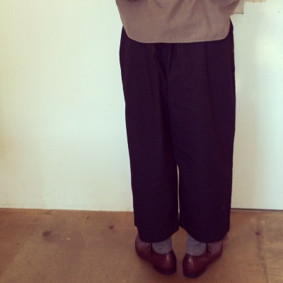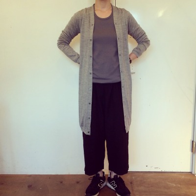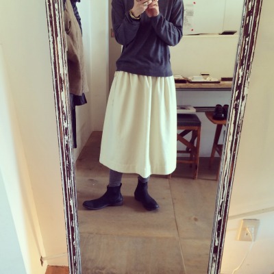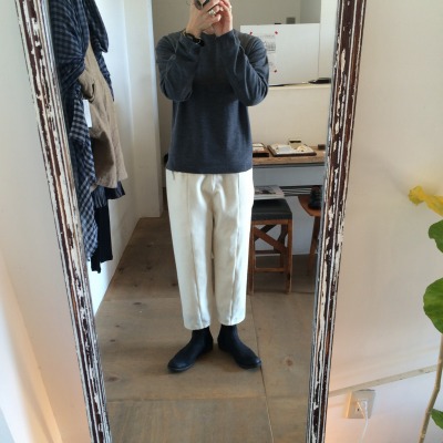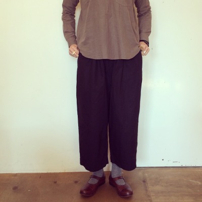 いつもの定番パンツに、昨年冬の販売から一年ぶりのウールギャザースカート