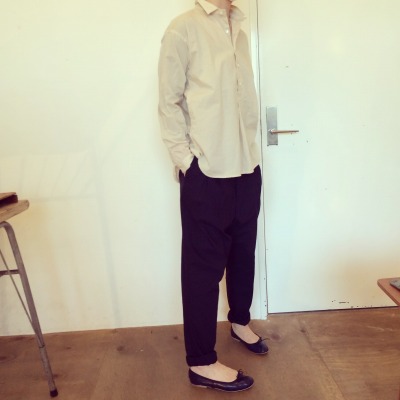 明日23日(火)より定番の30オリジナルパンツ(白色のウール地です)販売します!!